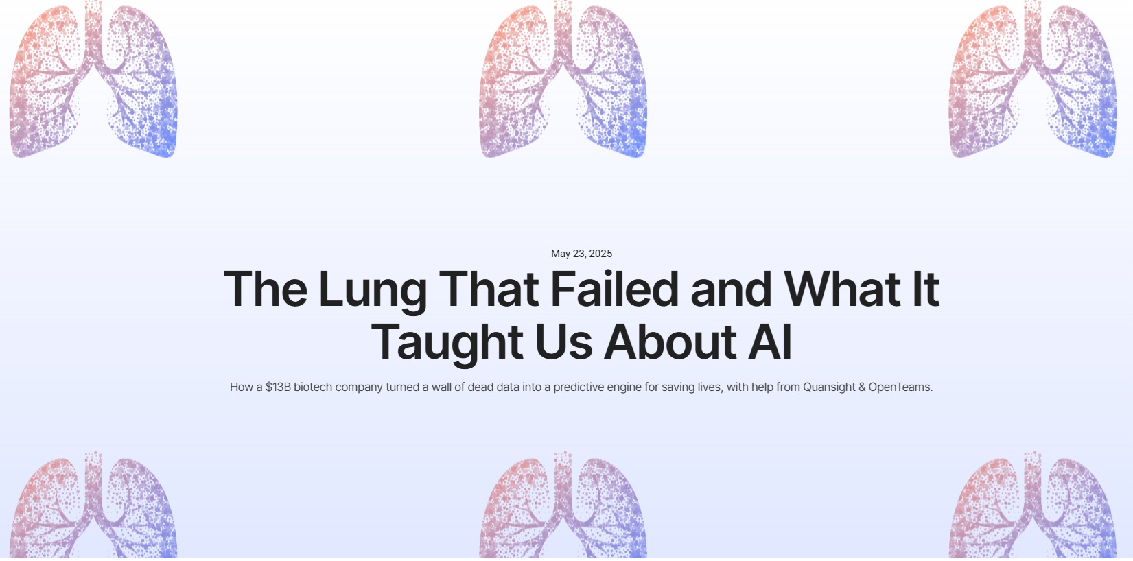 The Lung That Failed and What It Taught Us About AI A biotech firm saved millions by turning messy data into predictions. Learn how OpenTeams helped them own their AI infrastructure, before it failed. Read More »