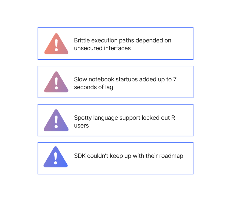 We brought R support to full parity with Python using RPy2 and IRKernel. Analysts no longer had to switch languages or hack together workarounds.